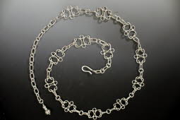 Granulated silver necklace with Amethyst cabochons fully soldered handmade chain. This piece measures 20" long including clasp.